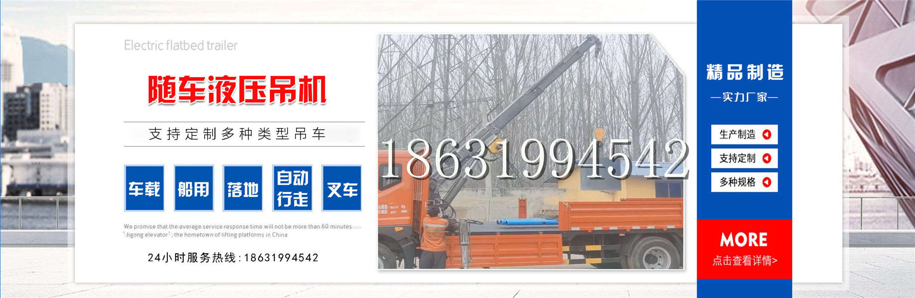 怀仁市随车吊机随车吊机加装随车吊改装那里有加装随车吊全地形履带吊全电动液压吊机本着对国家负责、对社会负责、对客户负责、对员工负责的企业责任,扎扎实实打基础,一心一意谋发展,实现了经济与社会效益的双丰收。“信誉是生命、质量求生存。”这是怀仁市随车吊机随车吊机加装随车吊改装那里有加装随车吊全地形履带吊全电动液压吊机全体员工秉承的原则,也是为之奋斗向前的目标。凝神聚力铸企魂,创新发展谱华章。在新的历史机遇和挑战面前,怀仁市随车吊机随车吊机加装随车吊改装那里有加装随车吊全地形履带吊全电动液压吊机人信心满怀,有责任和能力为国内外新老客户创造出更好更优质的产品,提供一流的服务。